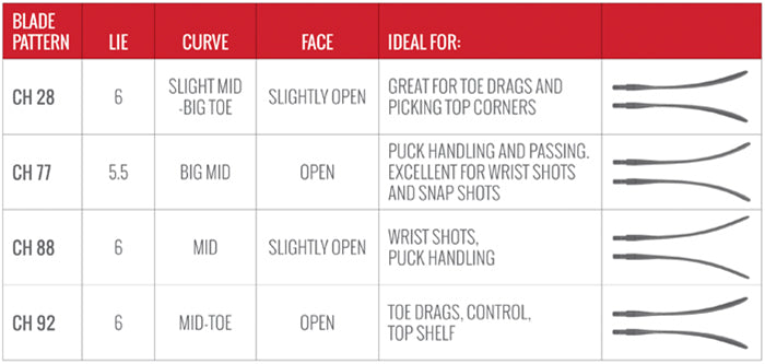 See the chart below on the specifics of each blade pattern that we offer.